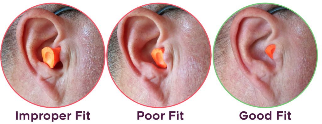Near the bottom of the noise control hierarchy is reducing the exposure time limits of workers with noisy machinery. Finally, using ear protection can also be used as a strategy for reducing noise related hearing loss. Unfortunately, ear protection is often not worn correctly, reducing it's effectiveness. Earplugs are one of the most common varieties of ear protection. They're inexpensive and easy to store. It is important to actually insert the earplug into your ear canal correctly to get the maximum hearing protection benefit. First roll the ear plug between your fingers into a compacted rod. Then slide the ear plug into your ear canal. By pulling your ear back, you will be able to better insert a earplug into your ear.